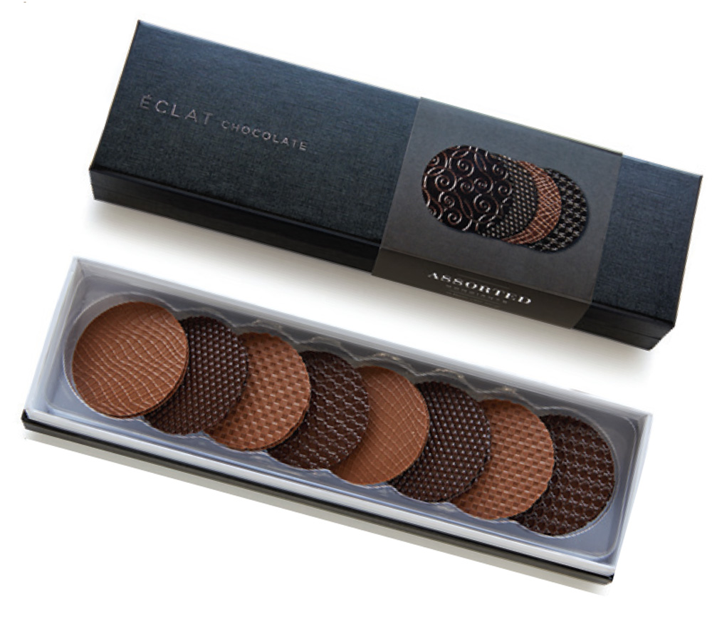 Discover the Signature Innovation of Éclat Chocolate with our Chocolate Mondiants™ Collection — a stunning array of impossibly thin chocolate medallions that exemplify our most distinctive contribution to artisanal chocolate. Each Mondiant™ showcases cutting-edge techniques that deliver exceptional flavor and a uniquely refined texture experience, all in an ultra-thin format. Perfect as an elegant gift for friends, family, or as a sophisticated corporate gesture. Find them at local shops and online at eclatchocolate.com.